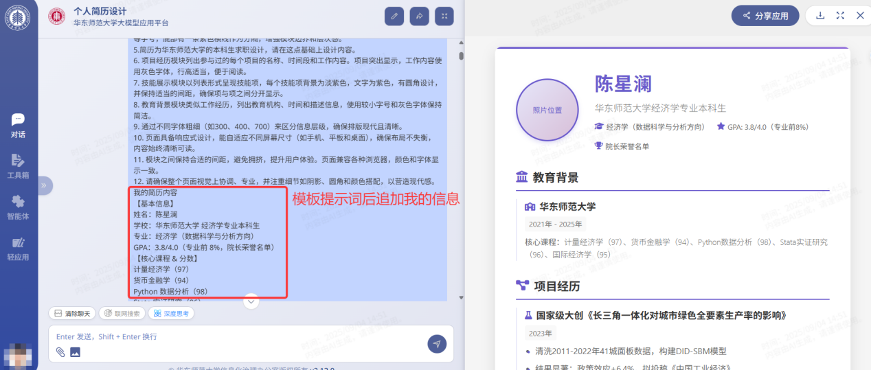 - 给ChatECNU输入超级简单的提示词,并开启联网搜索和深度思考: