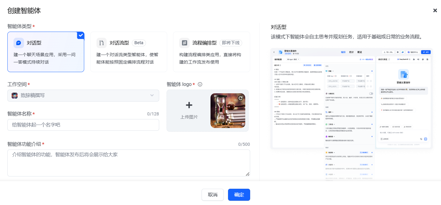 一句话解释:对话流型智能体 = 对话型智能体+ 强制调用工作流。