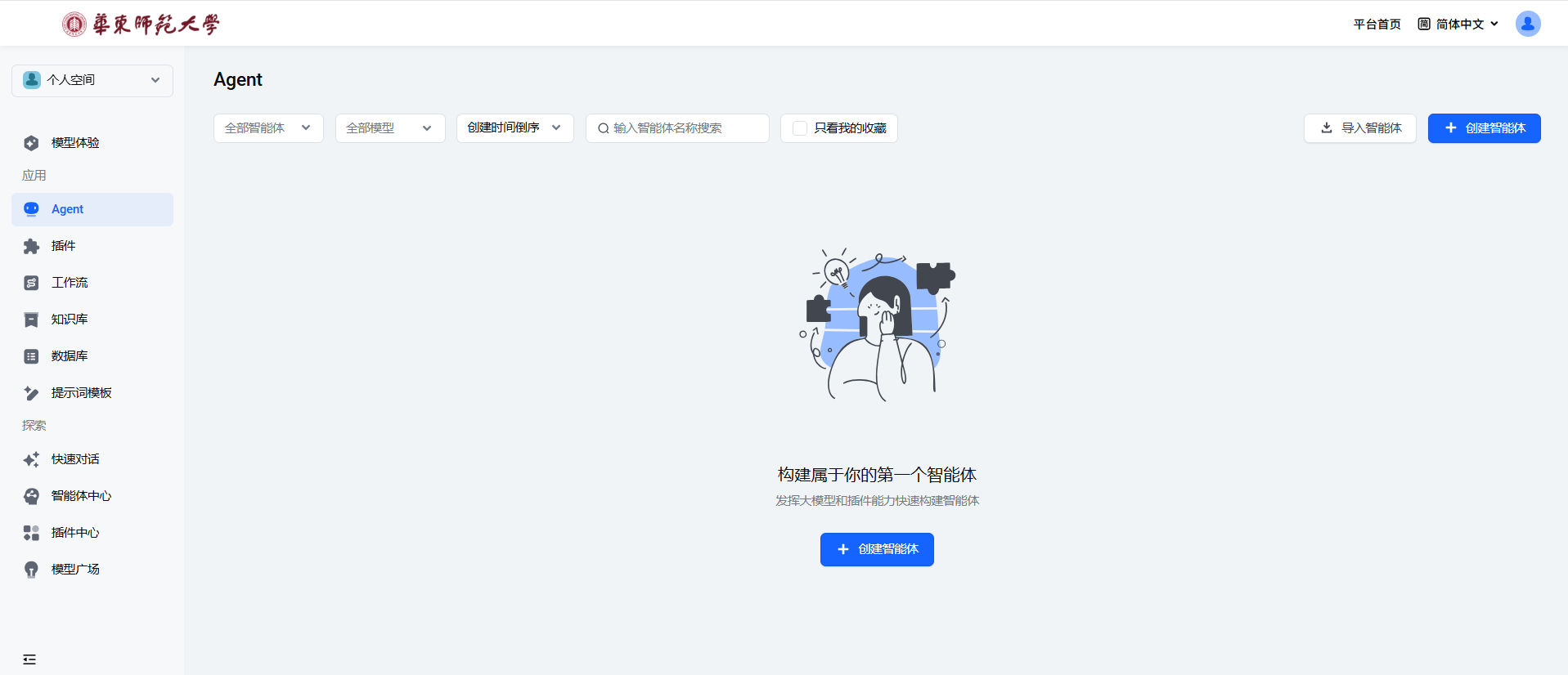 成功登录后,你会看到个人空间,这里就是你创建和管理智能体的“工作间”啦。