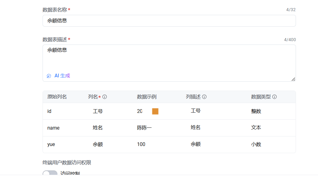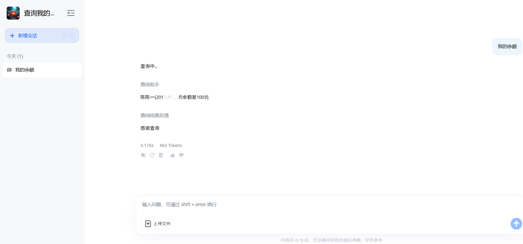 我有本地的数据表,已经导入到了agent平台的数据库里面,怎么通过学工号进行查询后返回结果?比如问“我的余额”,就会自动返回余额。