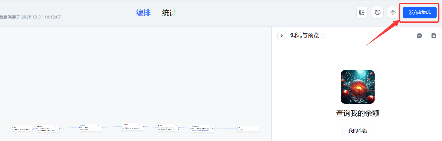 - 调试跑通后,点击右上角“发布&集成”